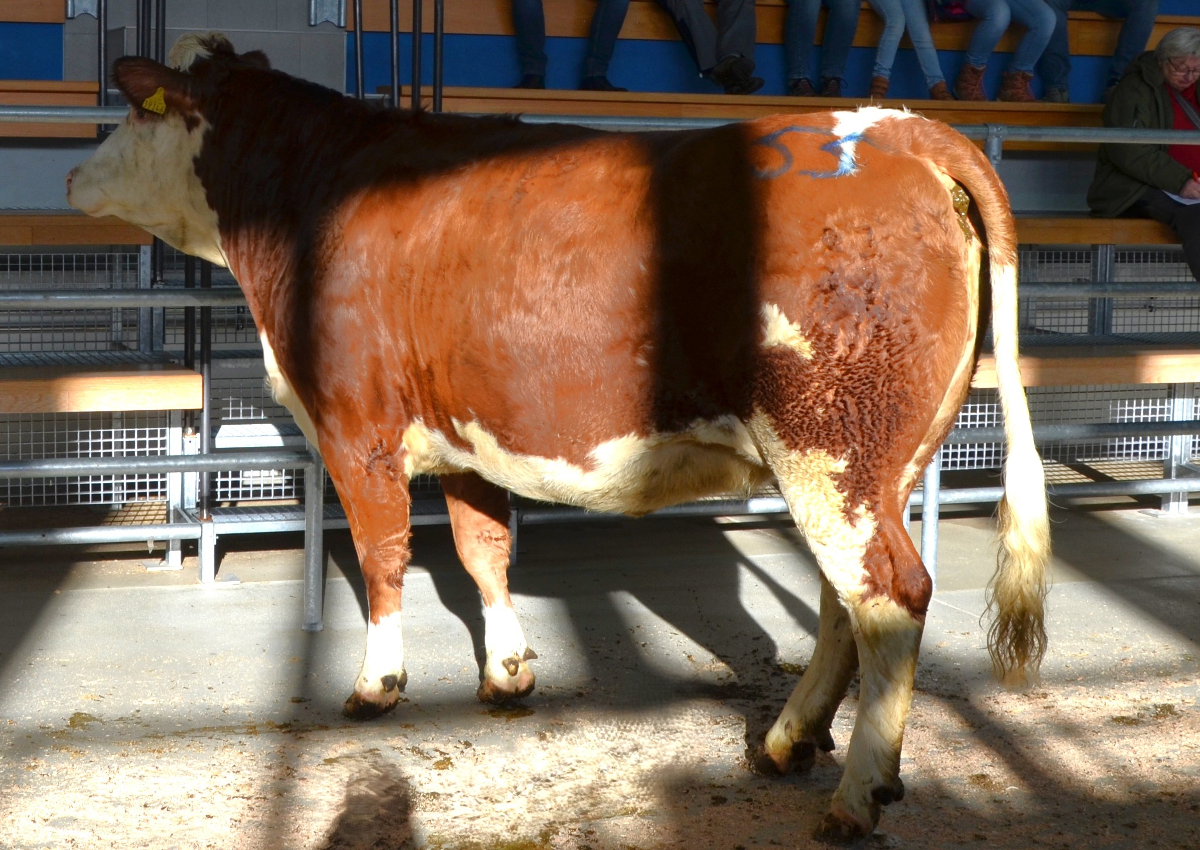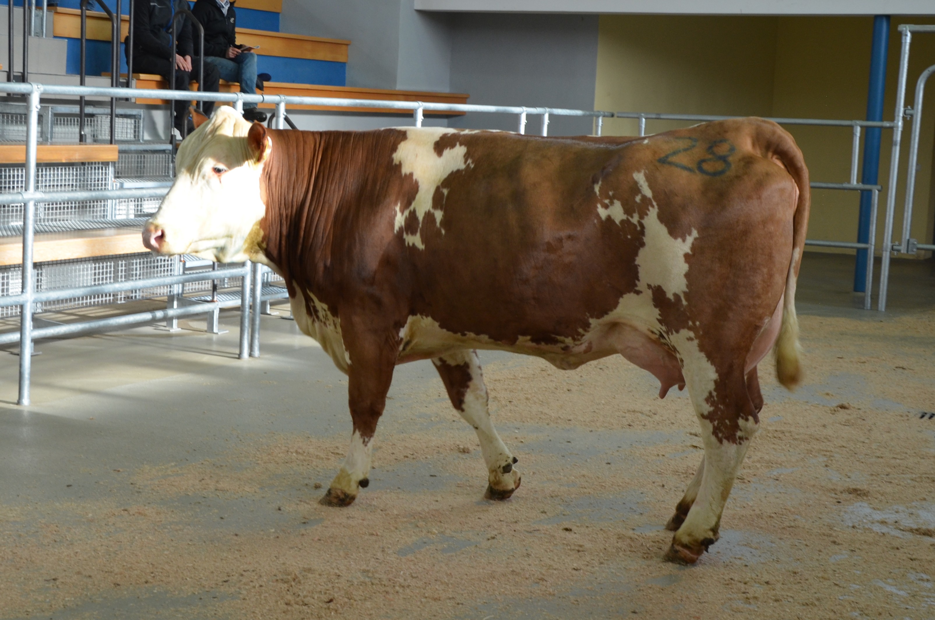 Zuchtbullen: 8 Bullen wurden aufgetrieben und gekört, 3 in Wkl I und 5 in Wkl II, wobei alle Bullen verkauft wurden, bei einer Preisspanne von 2.500 bis 22.000 Euro und einem Durchschnittspreis von 5.288 Euro. Teuerster Bulle mit 22.000 Euro war ein reinerbig hornloser Hardcore-Sohn von Familie Böhm Neuhaus (Kat Nr. 4), der zur BG Wölsau wechselt. Mit einem GZW von 139 steht er an erster Stelle von 265 Halbgeschwistern Mutter ist die Monopoly-Tochter Secret. Der zweite Bulle, der in den Prüfeinsatz geht, ist die Kat.Nr. 8, gleiche Mutter und somit auch gleiche Züchterin wie die Kat. Nr. 4. Vater bei diesem Bullen ist Hasso, der Bulle ist mischerbig hornlos, mit einem GZW von 138. Käufer ist die Bayern Genetik, Steigpreis 3.500 Euro.