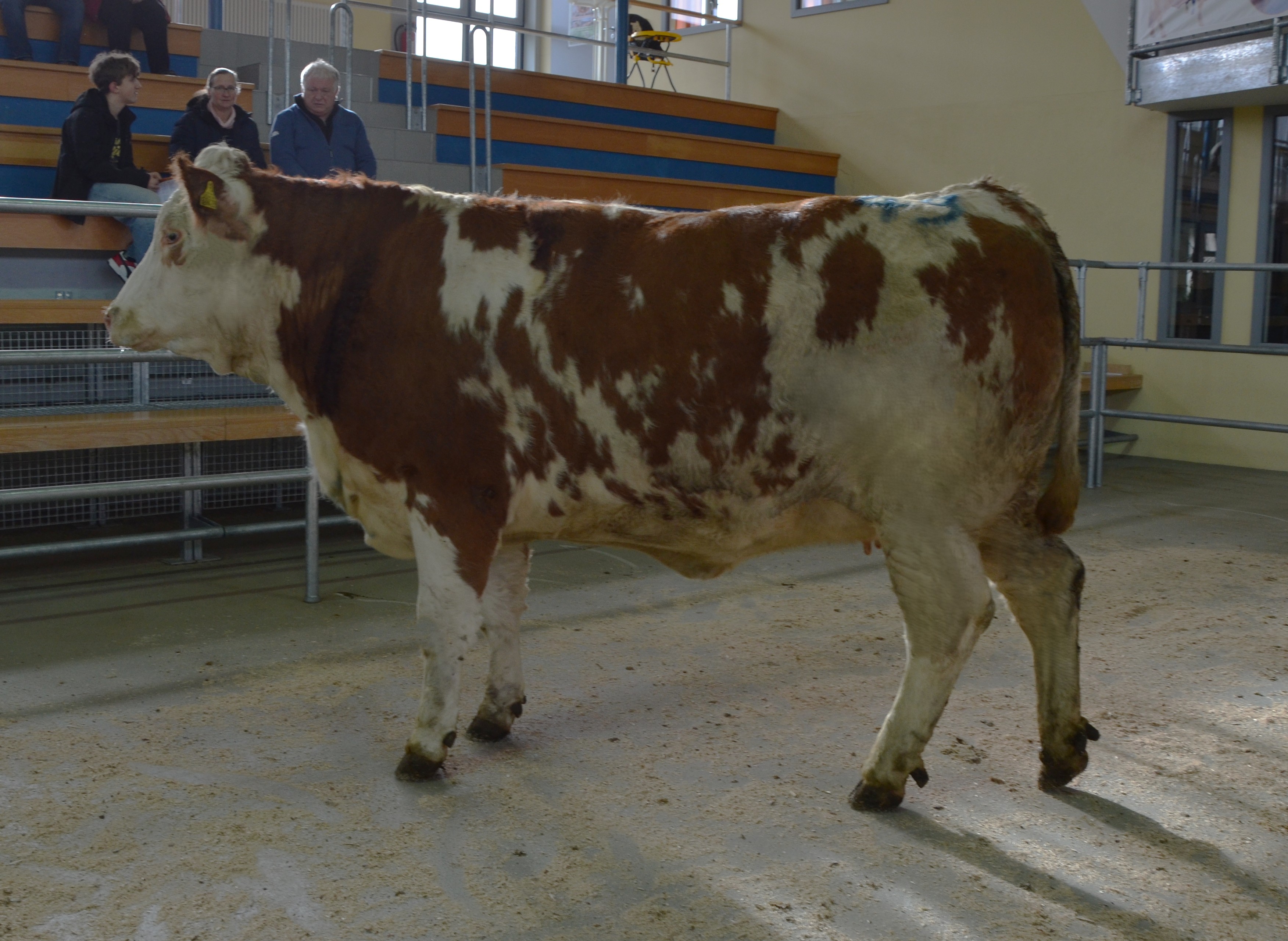 Kalbinnen: Es wurden 11 Tiere aufgetrieben und verkauft. Davon wurden 3 in Wkl I und 8 in Wkl II eingestuft. Der Preis lag in Wkl I bei 1717 Euro und 1425 in Wkl II. Den Spitzenpreis erzielte mit 1800 Euro die Kat. Nr. 74