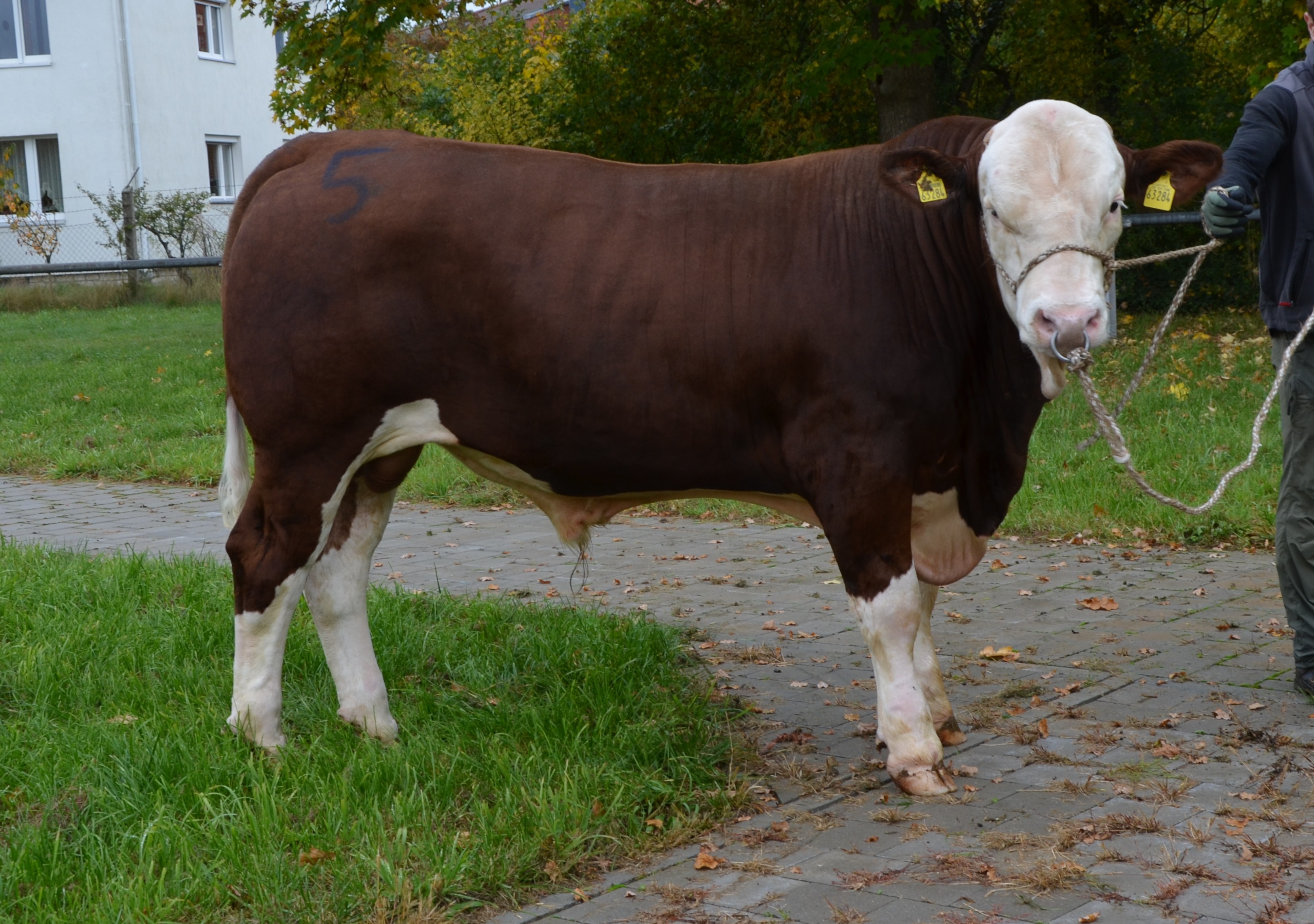 von Familie Hacker, Seulbitz eingestuft. Mutter des Bullen ist Antonie, eine Humid-Tochter mit bereits 7 Kalbungen. Mit einem Gesamtzuchtwert von 135 und einem Milchwert von 129 steht er an 15. Stelle von 270 Halbgeschwistern. Den Bullen steigerte der Besamungsverein Neustadt Aisch, ebenfalls für 3.500 Euro.