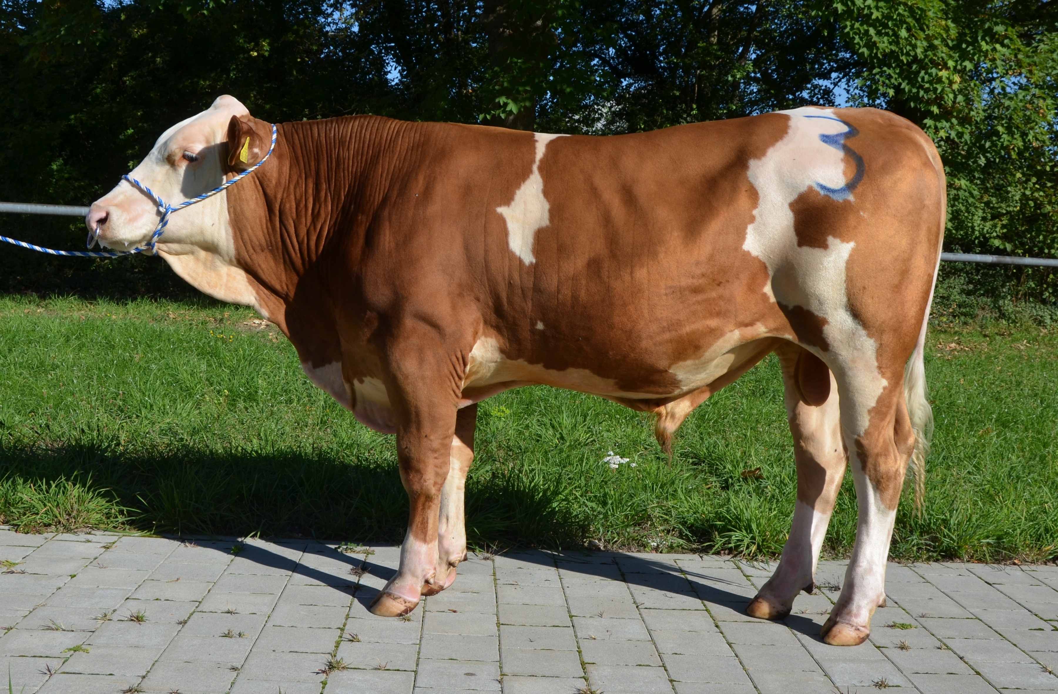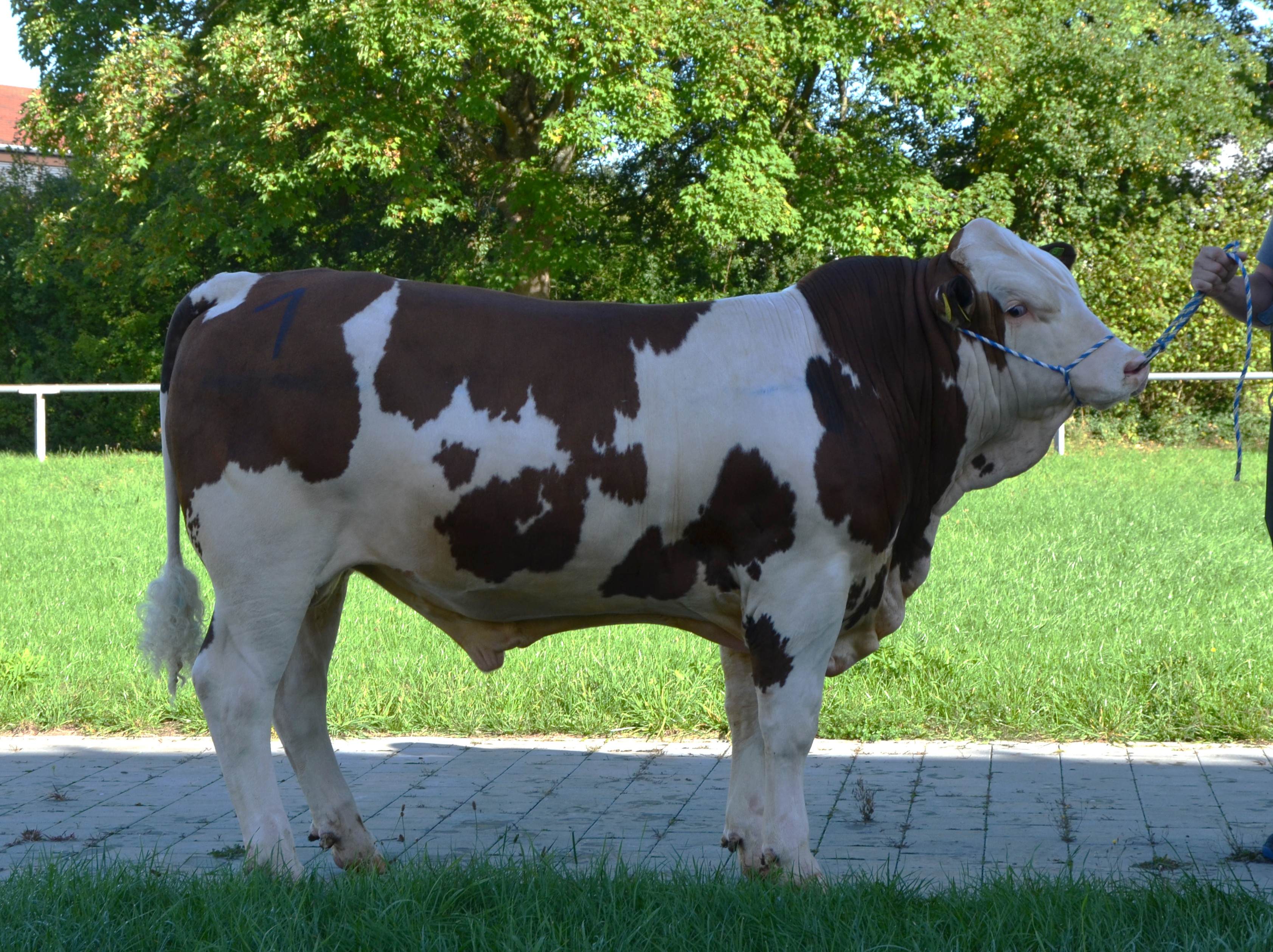 In den Prüfeinsatz gingen 2 Bullen: Die Kat. Nr. 1 ein genetisch hornloser Myfavorite-Sohn von der Familie Redel in Stadelhofen. Mit einem GZW von 139 rangiert er auf dem ersten Platz von 55 Halbgeschwistern. Mutter ist die Villeroy-Tochter Elsa. Den Bullen steigerte der Besamungsverein Neustadt Aisch für 5.000 Euro. Ebenfalls nach Neustadt wechselte die Kat. Nr. 2, ein Woernitz-Sohn von Familie Renner, Tiefenklein. Bei einem GZW von 137 steht er an 4. Stelle der Woernitz-Söhne, Muttersvater ist Imperativ. Der Steigpreis betrug 3.500 Euro.